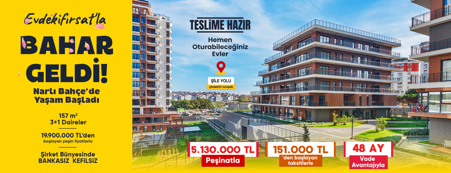 Narlı Bahçe Evleri'nde Evdeki Hesap ''evdekifirsat.com''a Uyar ! 48 ay vade ile bankasız kefilsiz evinizi alın, hemen yaşamaya başlayın. İstanbul’un en değerli bölgelerinden Şile Yolu–Çekmeköy mevkiindeki Narlı Bahçe Evleri'nden şimdi ev almanın tam zamanı.